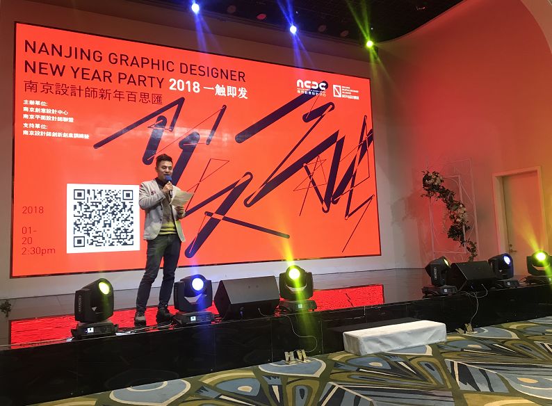 南京创意设计设计中心副主任刘晶 上台致辞。 她从五个方面介绍了2017中心工作的成效:一是加强国际设计交流与合作。二是举办参与重要奖项赛事。三是深化文化产业服务链。四是加强设计人才孵化培育。五是加强专业信息平台建设。最后,她代表中心感谢南京平面设计师联盟对本次活动的支持,预祝活动圆满顺利。新的一年,希望大家继续关注支持设计中心工作,一起创造美好未来!