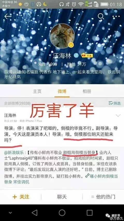 又一名编剧汪海林不嫌事儿大出来调侃暗批演员