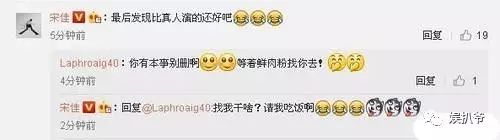 小宋佳还调侃道:“最后发现比真人演的还好吧...”暗批小鲜肉演技不行,连替身都能演得更好。博主回她“有本事你别删,等着鲜肉粉找你去”