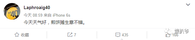 博主今天还发了条微博调侃“今天天气真好,煎饼摊生意不错...”