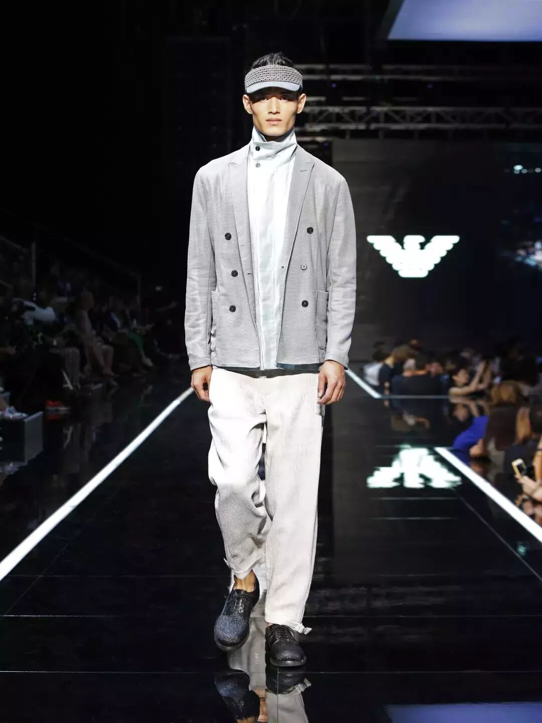 “机场是充满象征意义的场所,它们代表对外界的无限开放。旅客在此起飞去探索与了解未知世界,或在历险无数后安全返回。”Armani的雄鹰符号正式表达自由、冒险的精神,而这与Armani老爷子将地点选在机场的想法也是不谋而合。