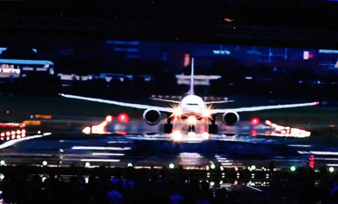 一架飞机的影像在大屏幕前逐渐攀升,