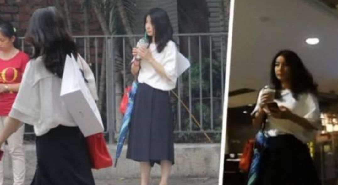 婚后回娘家,她自己一个人穿着朴素,手里拿着一杯饮料在街上闲逛。