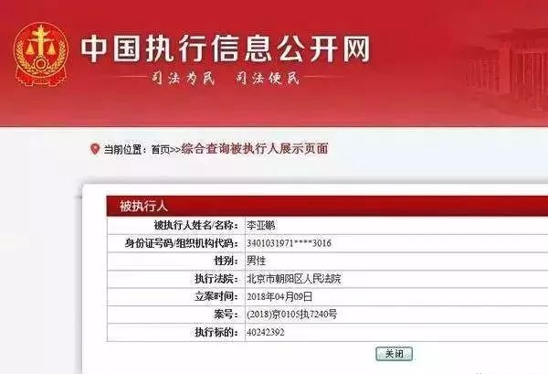 与此同时,另一则新闻也就此传开,李亚鹏却被法院列为被执行人。