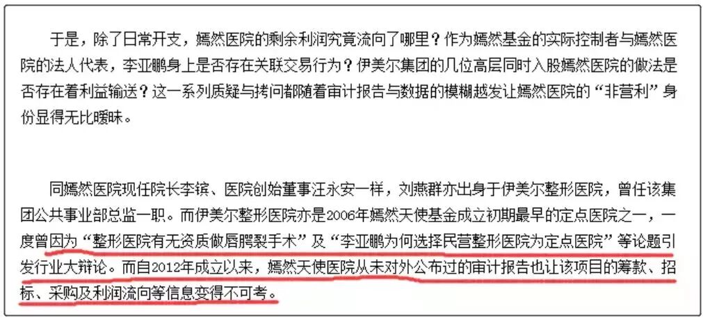 ▲这件事最先是由一个记者爆料出来的,说嫣然天使基金涉嫌侵吞善款。后来李亚鹏为了自证清白,请来了红十字会和民政部,做了18个月的审计,也是他特别难熬的一段时间。虽然最后被证实清白,但李亚鹏的嫣然天使基金确实因此暴露了很多问题,它的管理和运行资质都受到了质疑,利润去向、财务公开等等都成为了公众关注的焦点,经过这件事,李亚鹏的公司损失惨重,也侧面反映出,慈善不是头脑冲动一腔热血,做慈善其实要懂很多管理和财务知识的。