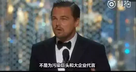 在奥斯卡现场,小李子甚至也谈到了在一个领个人奖项时显得过于宏大的主题——环保。