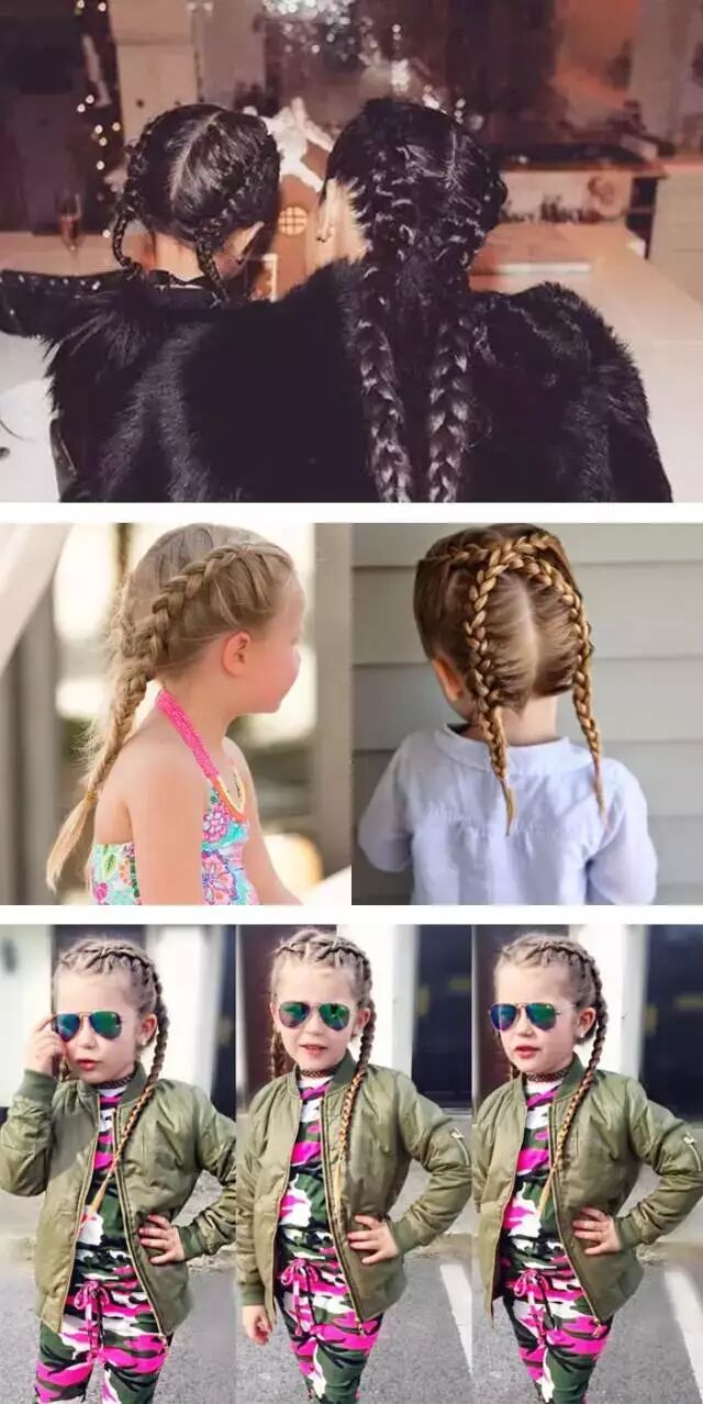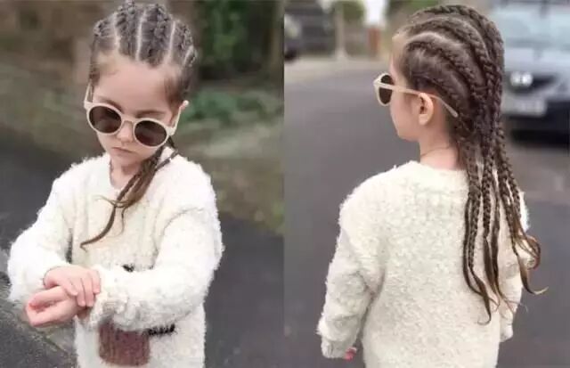 卡戴珊和女儿钟爱的法式辫,从头顶开始编起,绑得越紧越好。不紧就没有嘻哈味道了。