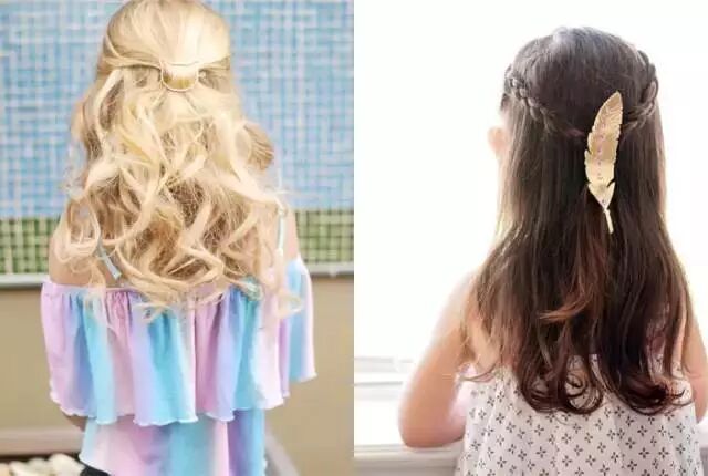 起晚了,没时间给女儿扎头发?那就大大方方的散着吧。发际别几个彩色发夹就是不错的造型。