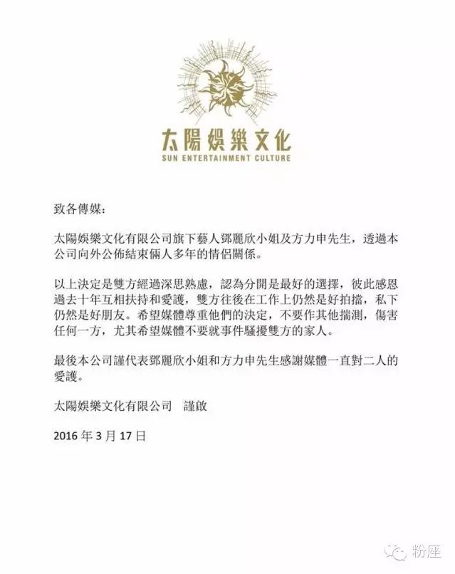 屡传婚讯的香港艺人方力申同邓丽欣(Stephy),今日透过公司太阳娱乐宣布分手。正当大家都以为打风都打唔甩的时候,相信大家都好难接受到他们分手的消息。