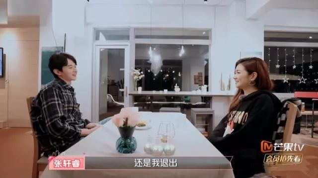 然后他很无奈的说,还是我退出啊?这句话,他似乎在问任家萱,他在看任家萱的反应,任家萱对于张轩睿的问题有点吃惊,她也没想到对方忽然会抛出这样的问题,她定了一下神很大气的表示,都可以啊。从表情来看,她舍不得张轩睿,但是,她没有强求对方。