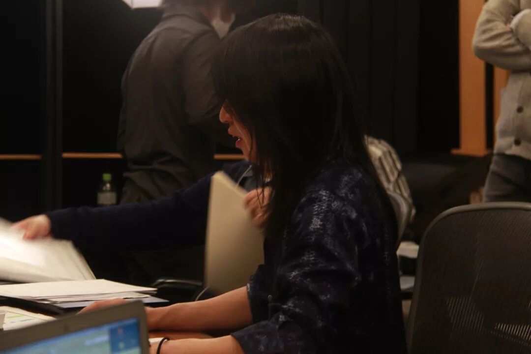 因为正式收录时摄影是不可以进去的,所以会特地彩排一次让摄影小哥进去拍摄。在负责人声的小姐姐部分时,为了保证拍摄效果,小姐姐们一秒入戏,神情十足,让摄影师拍了一组美美的镜头~(小姐姐很懂嘛)