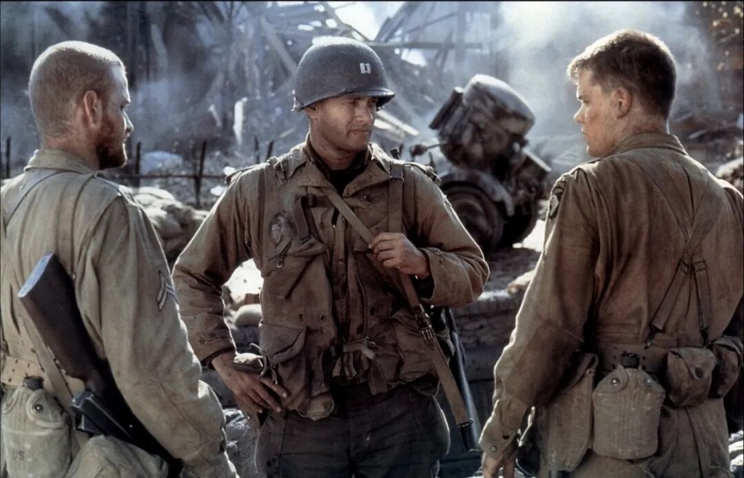 13、拯救大兵瑞恩(电影) 影片《拯救大兵瑞恩》是梦工厂1998年出品的一部战争电影,由史蒂文·斯皮尔伯格执导,汤姆·汉克斯、汤姆·塞兹摩尔和马特·达蒙等联袂出演。影片于1998年7月24日在美国上映。电影描述诺曼底登陆后,瑞恩家4名于前线参战的儿子中,除了隶属101空降师的小儿子二等兵詹姆斯·瑞恩仍下落不明外,其他3个儿子皆已于两周内陆续在各地战死。美国陆军参谋长马歇尔上将得知此事后出于人道考量,特令前线组织一支8人小队,在人海茫茫、枪林弹雨中找出生死未卜的二等兵詹姆斯·瑞恩,并将其平安送回后方。