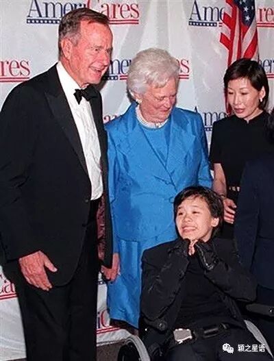 桑兰还和美国前总统老布什夫妇一起参加了慈善活动。