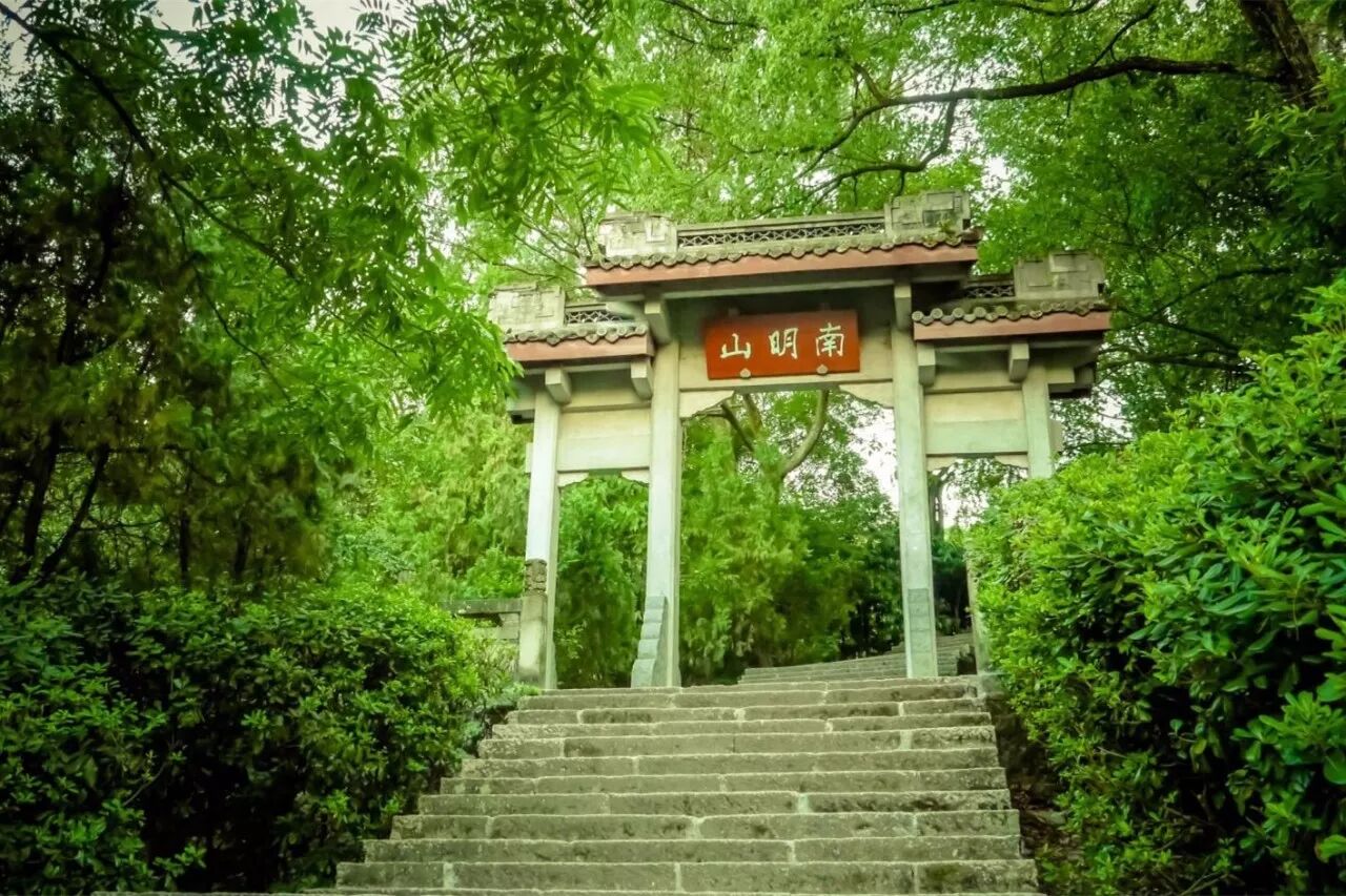 山上寺阁掩映于丛林,古迹隐现于丹崖
