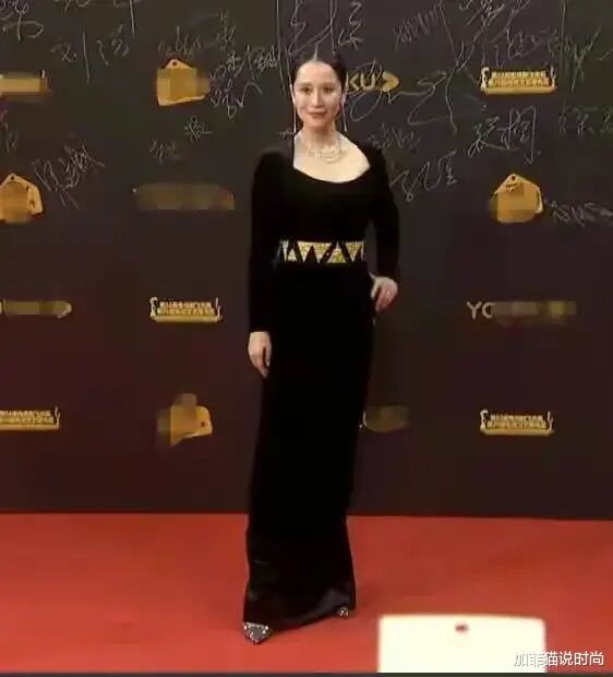 这次的红毯女星们没有穿纱裙,大部分都选择了比较稳的黑色裙装,马伊琍这套造型非常完美,完美的突出了一字肩,巴掌腰与身材比例也被完全彰显出,气质优雅贵气又不失酷范儿。贴头皮发型和黑色长筒靴,帅气爆棚,这身黑色礼裙又帅又气场,适合马伊琍的气质。