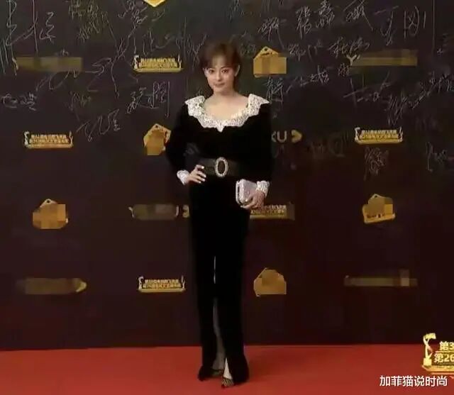 海清与孙俪都选择了黑色礼裙,这次大家走的都是比较保守且稳重的造型,而且还都是比较贵气的丝绒材质,复古典雅,高贵大方。孙俪这款领子处拼接了一层白色蕾丝荷叶边,显得俏皮可爱很多,肩膀处显得有点宽了,大家觉得呢?