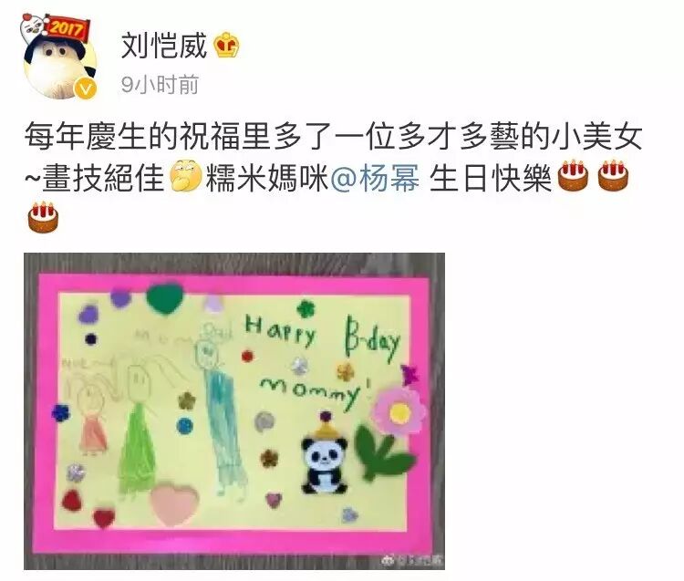今天打开微博,发现居然是大幂幂的生日,刘恺威还在微博晒出了小糯米为妈妈制作的画。