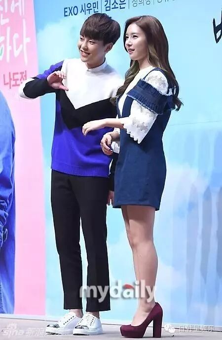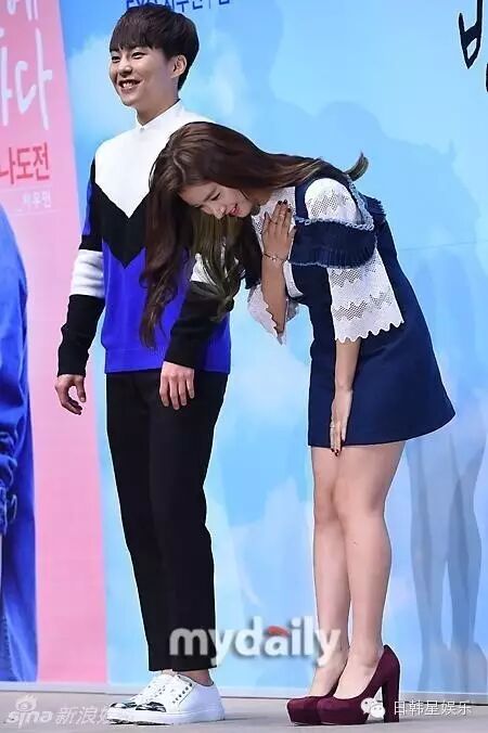 发布会上原本打算和男主角EXO成员XIUMIN摆出爱心POSE,引起在场粉丝嘘声,只得作罢,还微笑著道歉。