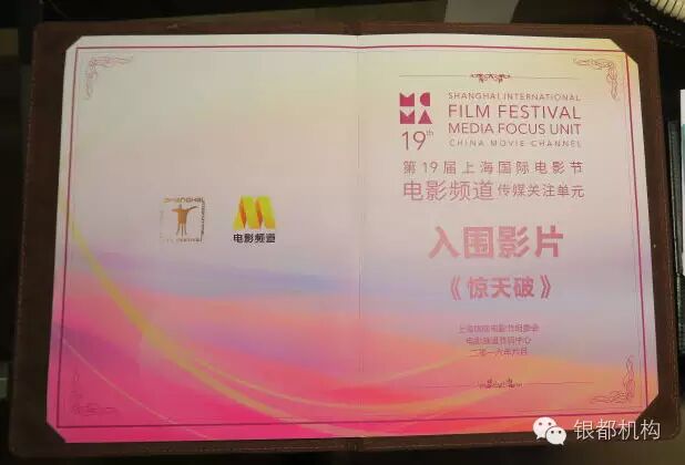 银都机构巨制《惊天破》主演谢霆锋斩获“第19届上海电影节电影频道传媒关注单元最受传媒关注年度演员奖”。