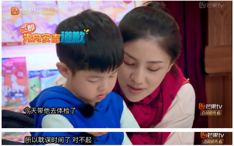 看着不开心的安吉,胡可第一时间跟安吉道歉,说明迟到的原因“带着小鱼儿体检耽误时间了”。