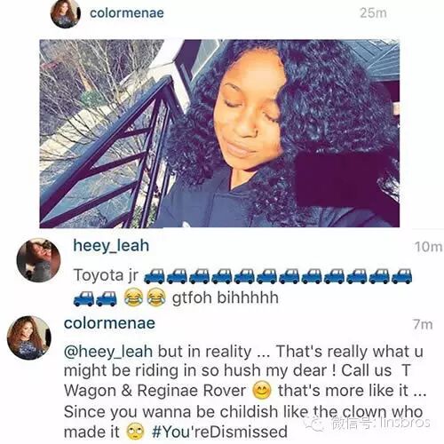 女粉丝对她妈妈Toya不敬评论说:Toyota(Toya改写成丰田)Jr get the fuck outta here...Bitch.
