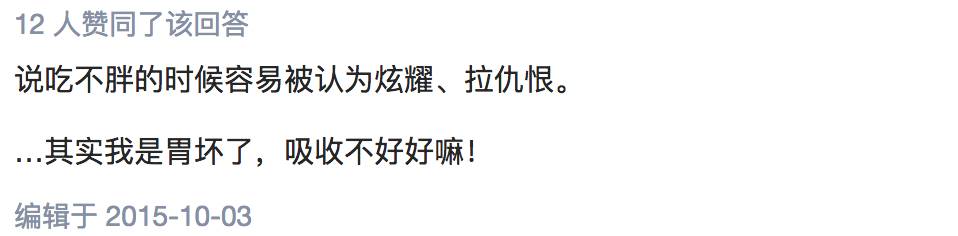 比如我们每次和瘦子朋友一起吃饭,看他们吃很多却不胖难免会调侃两句。有时候他们抱怨两句想长肉总会被周围的人觉得是炫耀。