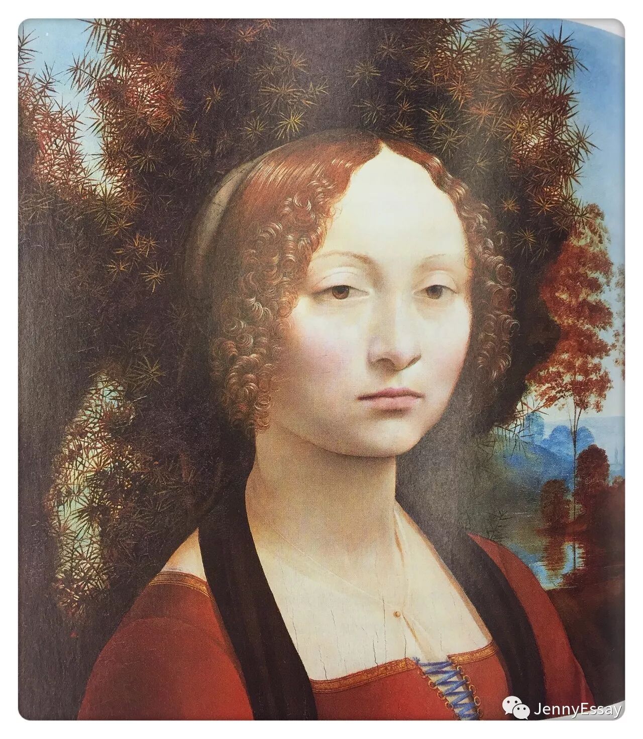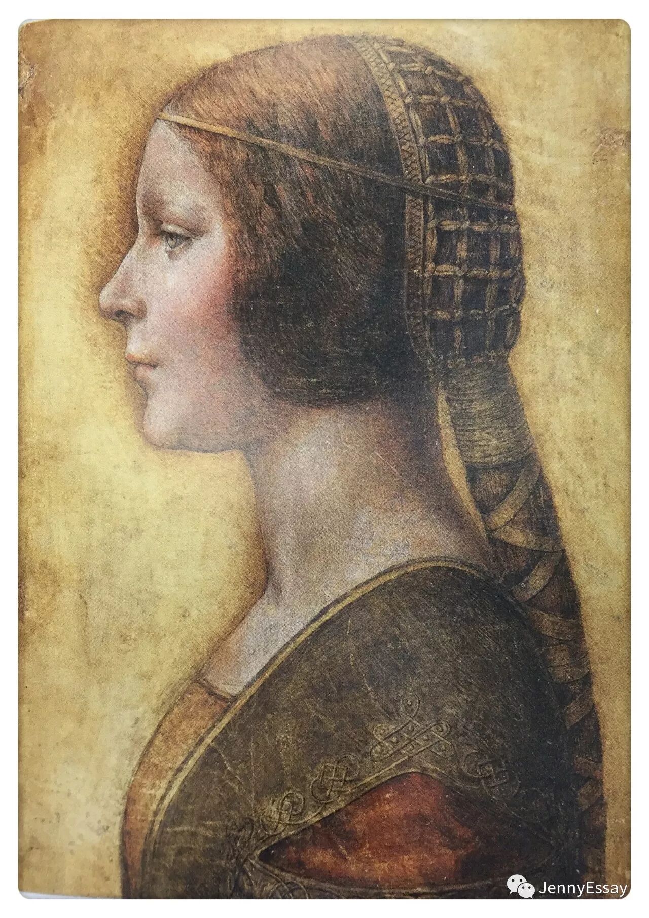 这是达芬奇第一幅非宗教故事的绘画作品,给一名银行家女儿画的肖像画。作品的光线、紧密的小发卷和非传统的3/4角度的姿态都是达芬奇特点的笔触,更重要的是,这幅画成为了后来Mona Lisa的原型。