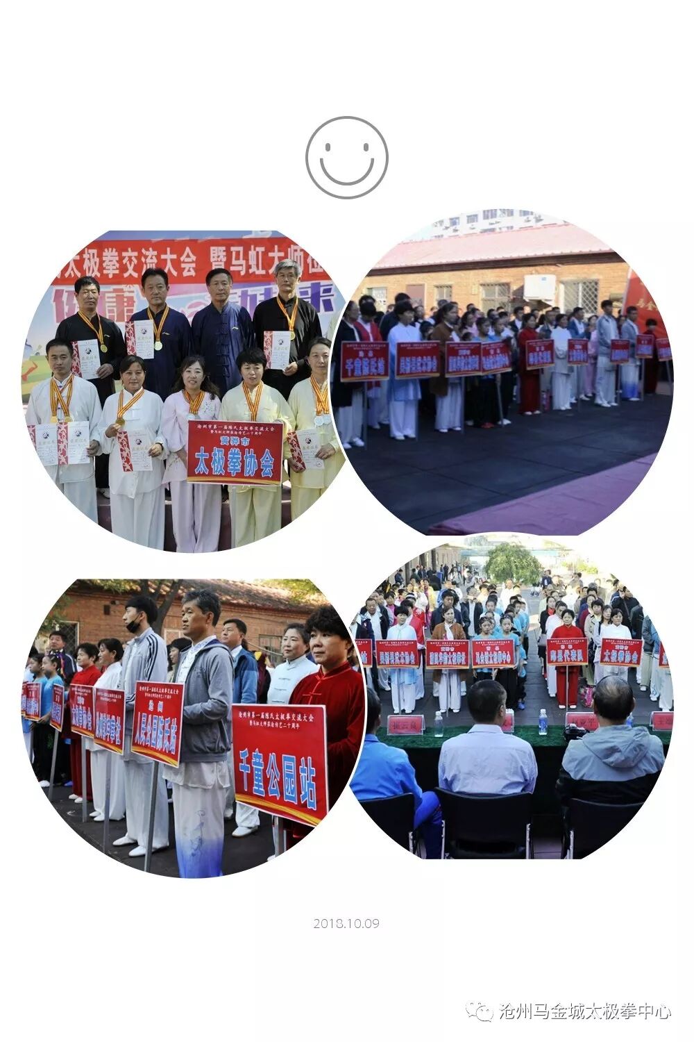 金秋十月,阳光明媚,碧空万里!沧州市首届陈氏太极拳交流大会暨马虹大师莅沧传艺20周年交流大赛圆满成功,沧州市马虹支系拳友们于2018年10月2日在沧州市老年体协欢聚一堂,首届陈式太极拳交流大会隆重举行!参加本次大会有来自邯郸市邱县和沧州市、县、区共13个代表队(沧县千童陈氏代表队、沧州乾坤拳社代表队、沧州青县马金城太极拳中心、沧州炼油厂代表队、海兴代表队、邯郸市邱县代表队、南湖站代表队、人民公园代表队、东光代表队、黄骅市清风华韵太极拳社、千童公园代表队、吴桥县武术协会代表队、黄骅太极拳协会代表队),近200人参加了45个项目的竟赛。