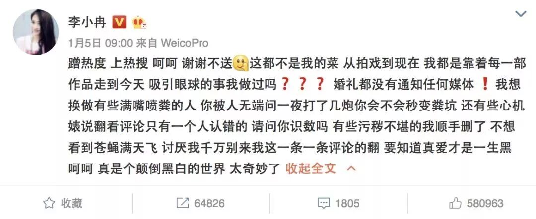 还记得三个月前,李小冉在微博上手撕那些说她“蹭热搜”的键盘侠吗?直接放话:我都是靠着每一步作品都到今天的!老娘婚礼都没有通知任何媒体!