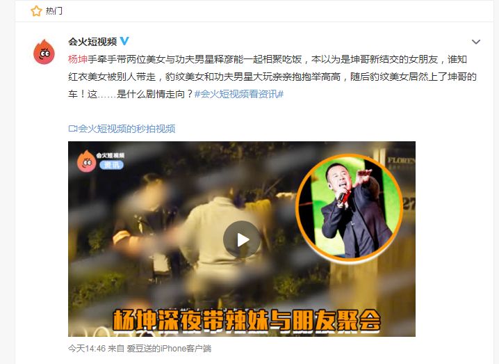 最近,杨坤被爆出深夜带两位辣妹与朋友约会。