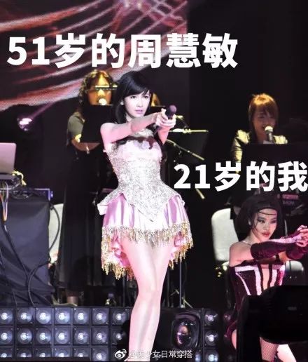 有网友指出演唱会中的图,旁边20多岁的少女都不及周慧敏年轻▽