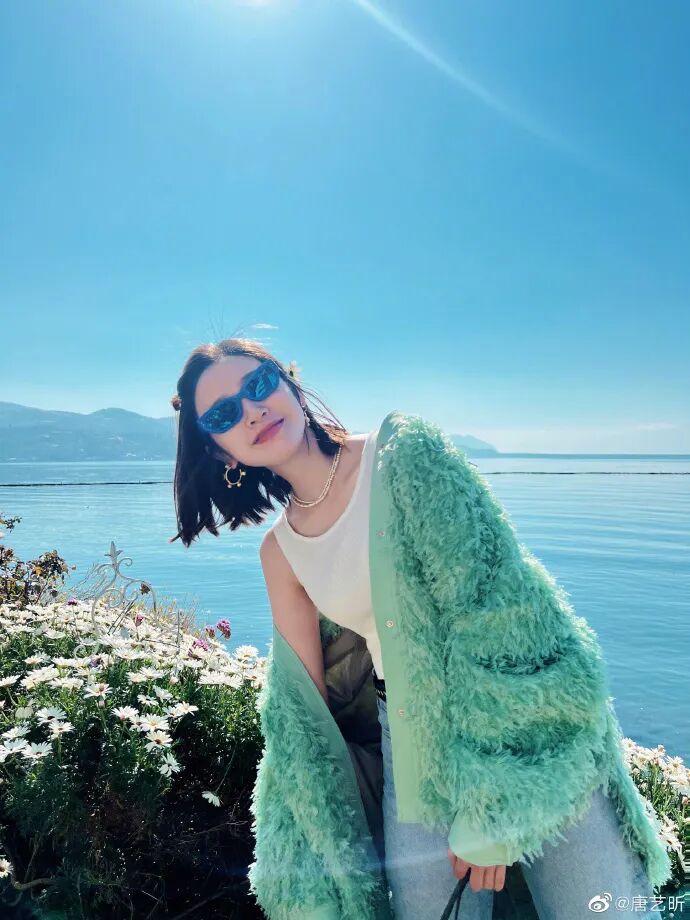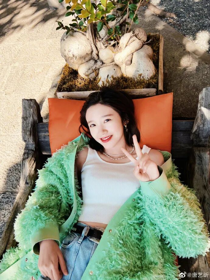 唐艺昕的云南旅拍大家都看了吧!绿色的毛毛外套上身,配上简约的吊带背心,真真好明媚、好春天。