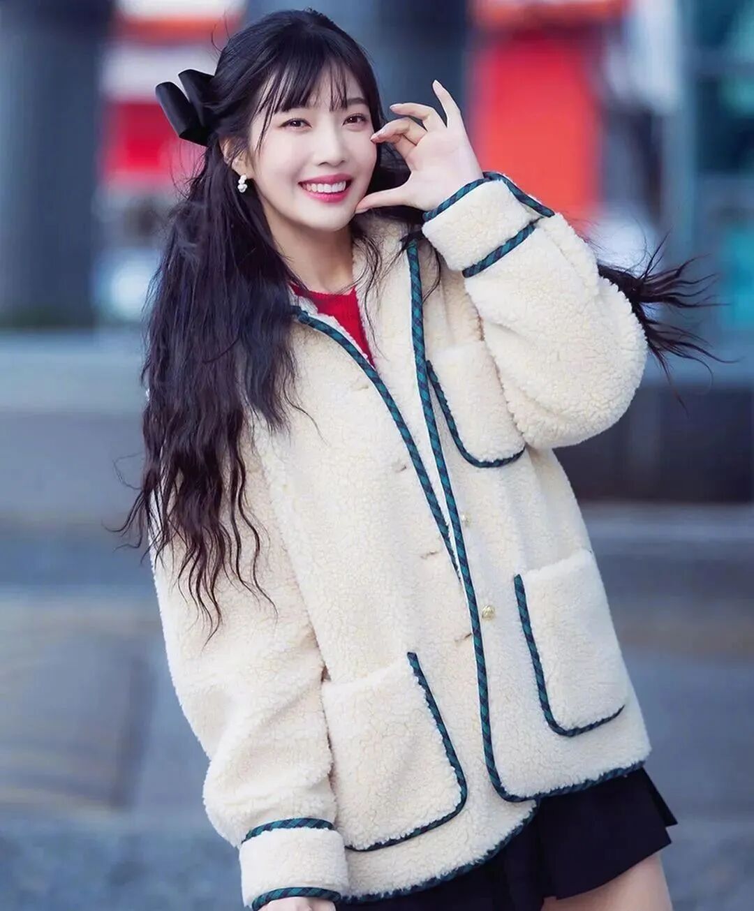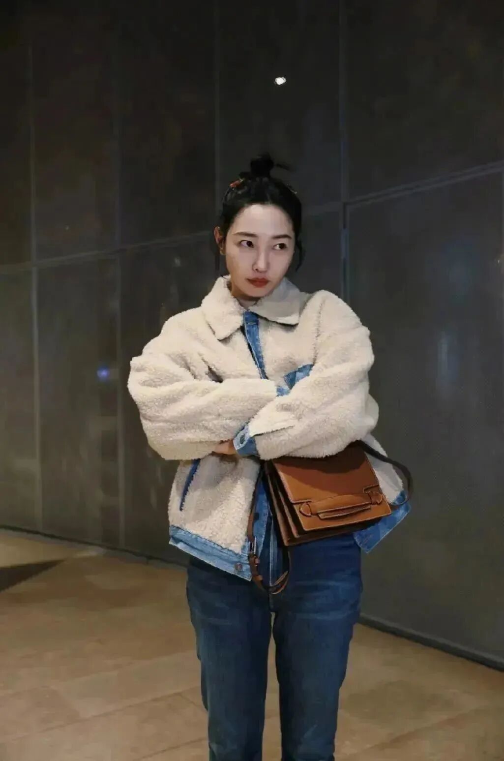 白百何身穿羊羔毛夹克