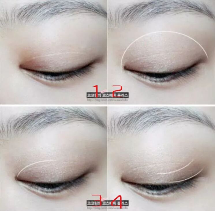 1& 2.同样用米色或白色在眼睑处打底,如果要效果更明显可以像步骤2中一样涂抹高光;