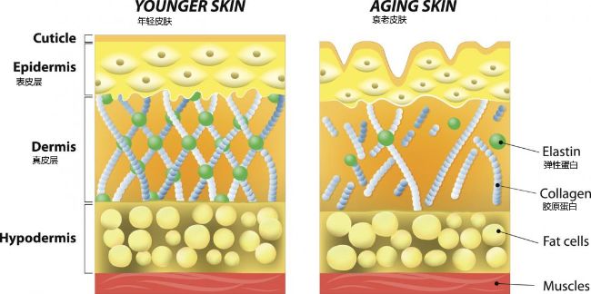 也就是说胶原蛋白糖化后会失去原有的水分,生成褐色蛋白质,直接导致肤色暗黄。而弹性蛋白被糖化之后就无法连接胶原蛋白,皮肤就会逐渐变松弛失去弹性。