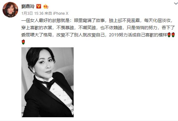 “一个女人最好的状态就是:眼里写满了故事,臉上却不见风霜,每天化个淡妆,穿上喜欢的衣裳,不羡慕誰,不嘲笑誰,也不依賴誰,只是悄悄的努力,吞下了委屈喂大了格局,改变不了别人就改变自己,2019努力活成自己喜歡的模样。”