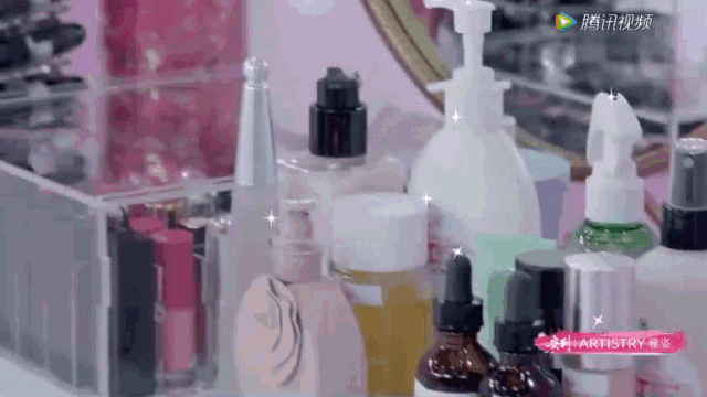 走马观花过一遍,随便讲两句是个人都知道的美妆常识。花花蝴蝶的亮片闪烁滤镜,可能是想考考观众眼力有多好分是否得出眉笔和口红。