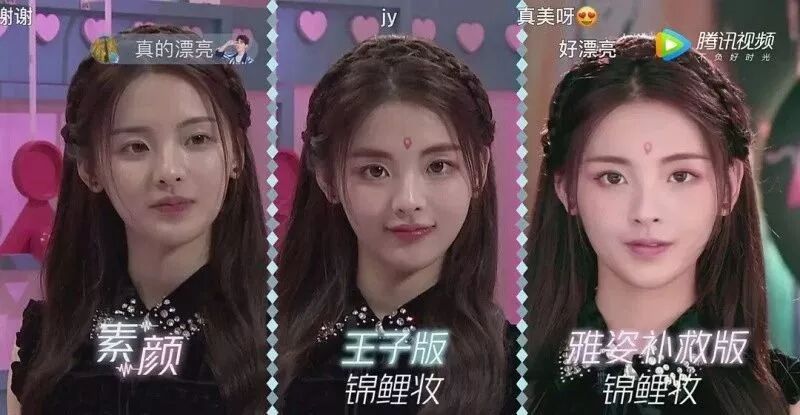 有意思的还有关于素颜的讨论。为了贯彻美妆节目的宗旨,节目要求女嘉宾务必素颜出场以供美妆教学之用,当然杨超越的这个素颜我是不信的。