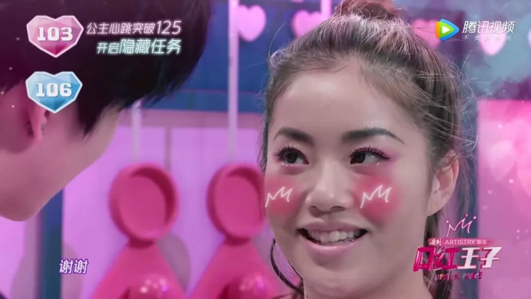 终于到了“王子给公主化妆”的玛丽苏情节。首先是女明星害羞红晕大赏。