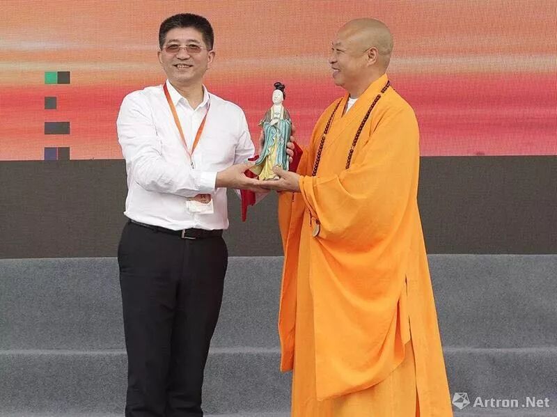 陈海波先生代表以慈化瓷活动组委向本寺捐赠民国时期尊素三彩观音菩萨圣像
