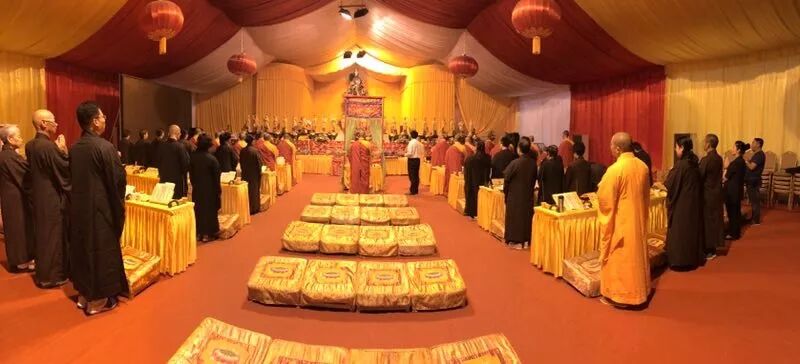 上午八时半,举行礼拜《大悲宝忏》仪式,与会大众虔诚礼拜、忏悔发愿,共同祈福世界和平、祖国繁荣、城乡美好、平安吉祥。在场游客也情不自禁地驻足礼拜,一同感受法会的殊胜庄严。