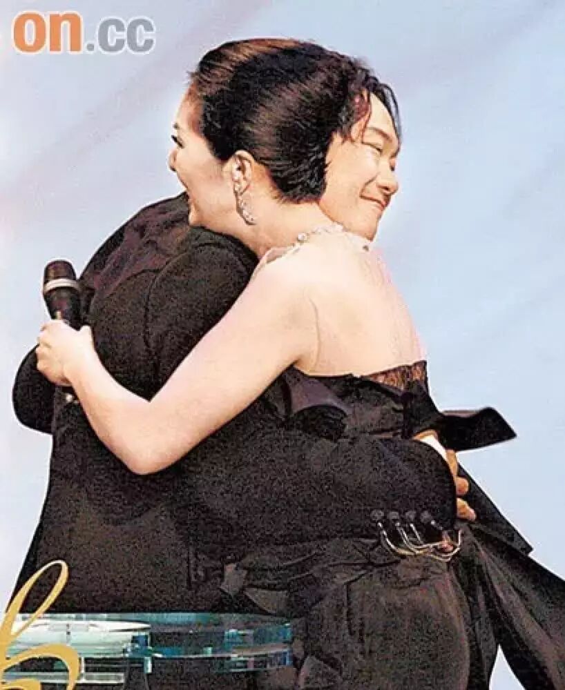那个时候陈奕迅刚刚领完最受欢迎男歌手奖,他讲完感言本应该从舞台侧面离开的,可是在听到杨千嬅名字那一刻却突然掉头回来,飞扑着给了杨千嬅一个拥抱。