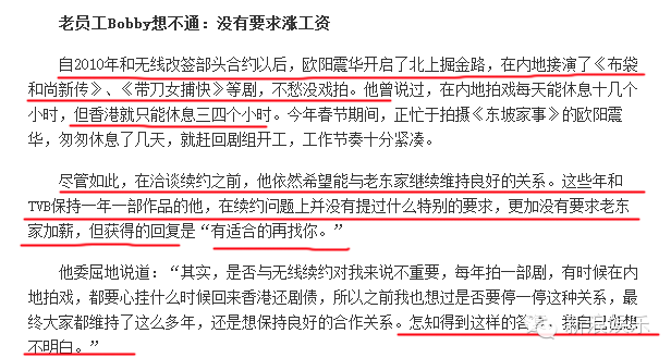 结果TVB素这样说的:“你这几年都没什么表现,不值得加那么多钱的薪酬。”