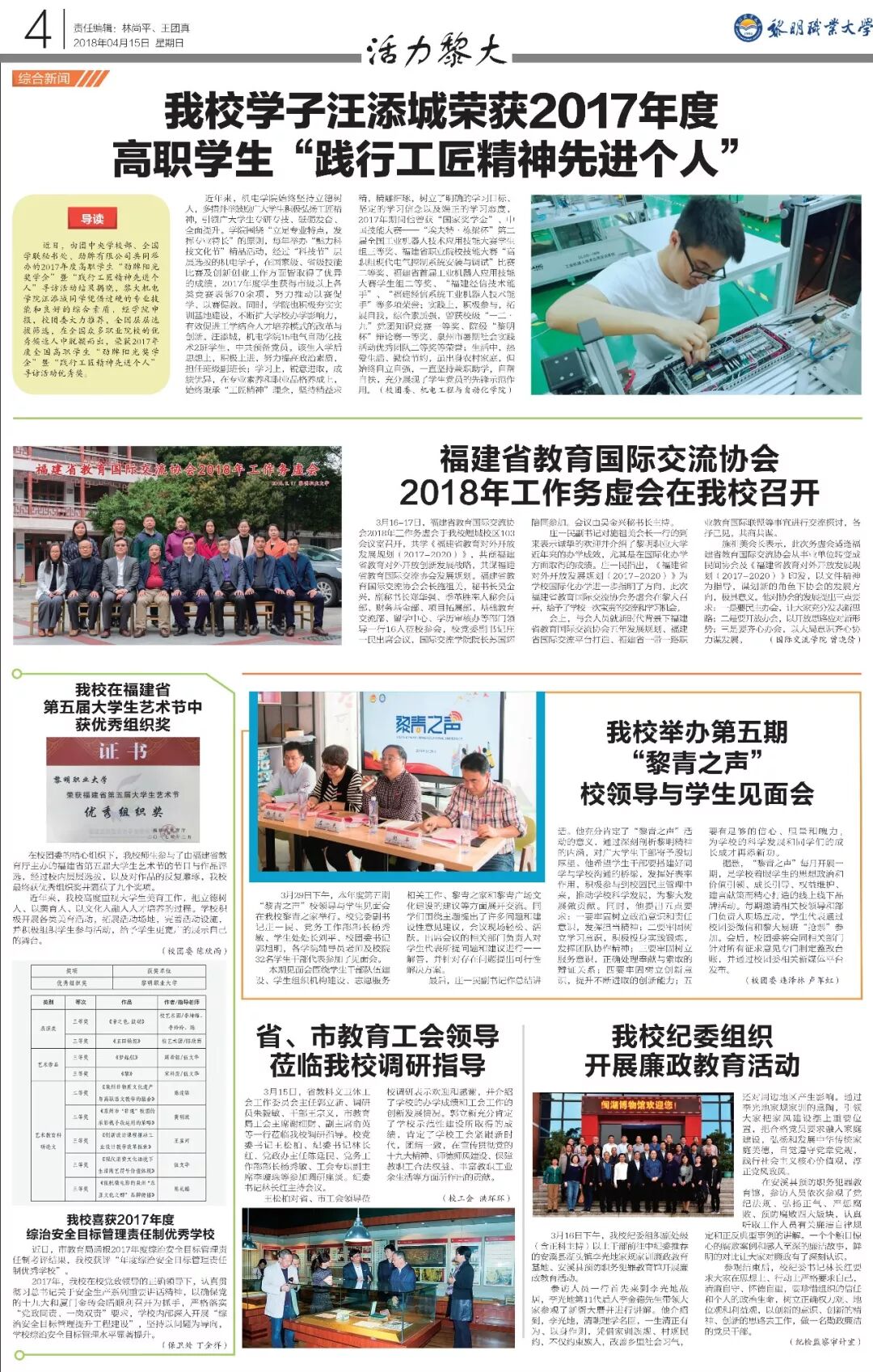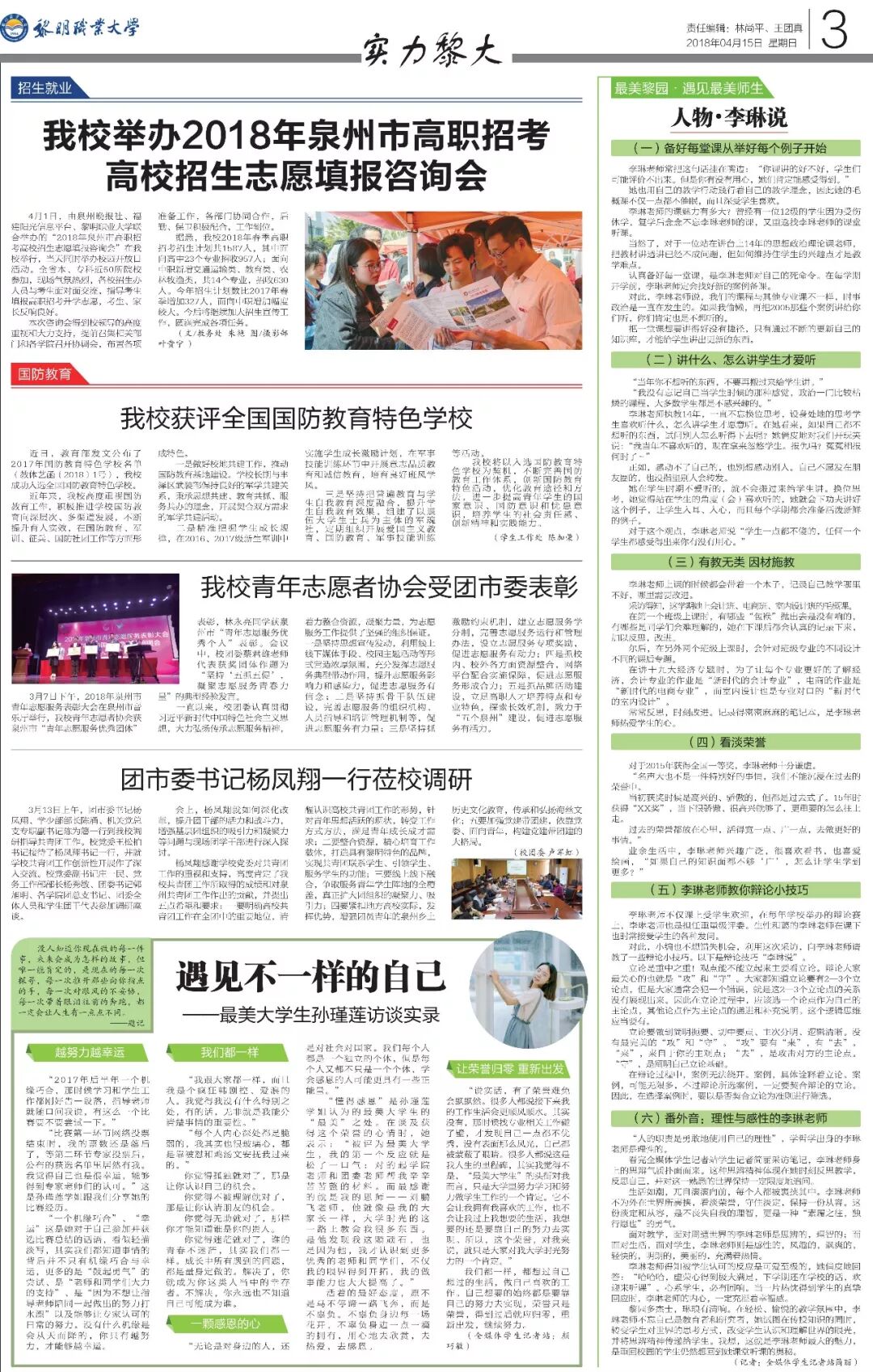 4月1日,由泉州晚报社、福建阳光信息平台、黎明职业大学联合举办的“2018年泉州市高职招考高校招生志愿填报咨询会”在我校举行,当天同时举办校园开放日活动。全省本、专科近50所院校参加,现场气氛热烈,各校招生办人员与考生面对面交流,指导考生填报高职招考升学志愿,考生、家长反响良好。