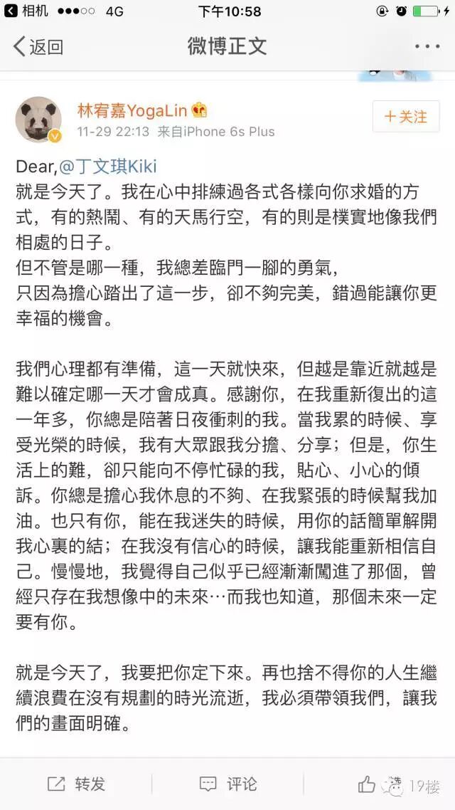 不过女朋友丁文琪转发了告白之后,却吐槽林宥嘉: