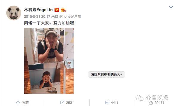 林宥嘉以简单的三个字和一张甜蜜拥抱照