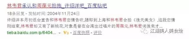 当然,这段恋情也没好结局。2003年,拍摄《海豚湾恋人》期间,林韦君劈腿许绍洋,俩人车内激吻,赶巧被狗仔拍到。
