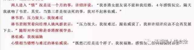 一时间,林的负面新闻满天飞,顶不住舆论压力,于是,召开了记者招待会,向林佑威道歉的同时宣布分手。