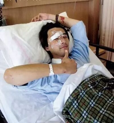 当时新闻里说胡歌眼皮整个没了,胡歌的脖子和右眼缝合了100多针,并在四天内经历两次全身麻醉的手术。