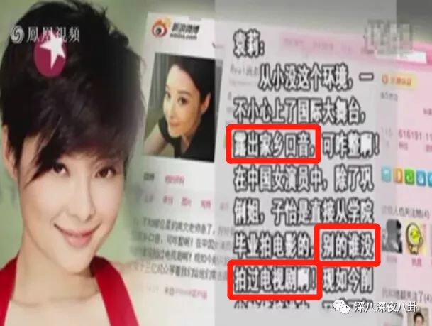 讽刺她各种无耻炒作、假正经、讲英语有口音、看不起电视剧行业等等等等